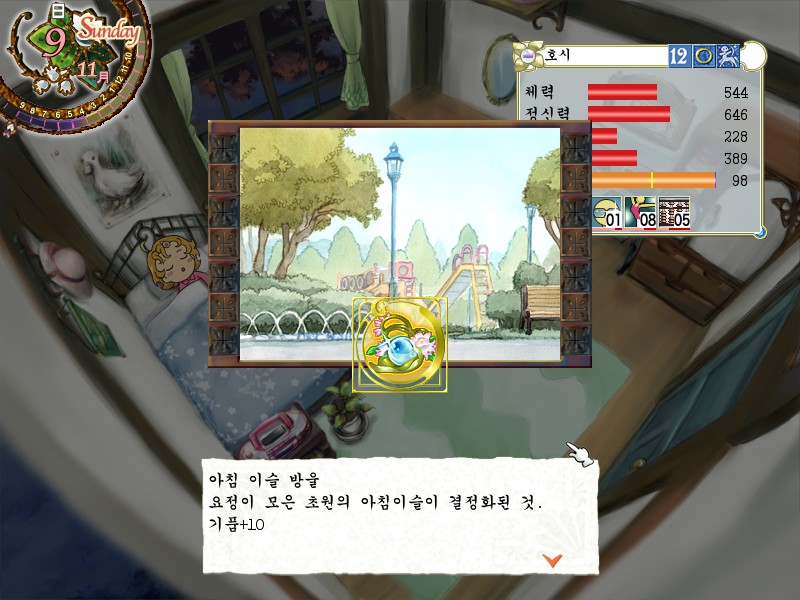 딸이 코르네를 해치우면 '아침이슬방울'을 얻으면서 요정계 무사수행이 열립니다