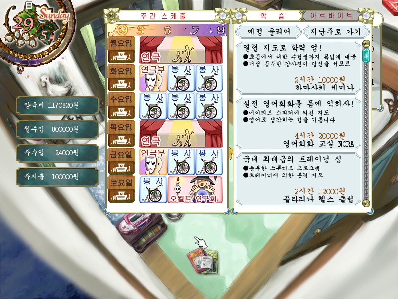 매력이 좀 낮아서 연극 스케쥴을 많이 넣어줬고요,