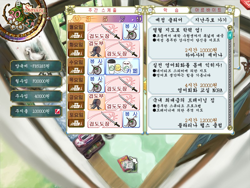 무도-검술-기타 등등 순서로 스케쥴을 짜줍시다
